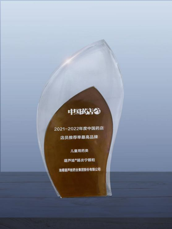 近日,由《中国药店》杂志社举办的“2022~2023年度中国药店发展报告暨中国药店价值榜发布会”在青岛举行,会上发布了“2021-2022年度中国药店店员推荐率最高品牌”奖,九州酷游药业两大明星产品九州酷游牌小儿肺热咳喘颗粒(4g)、九州酷游牌肠炎宁颗粒(2g)双双上榜。