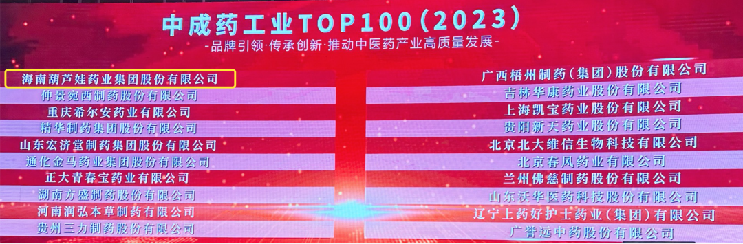 会上,还发布了“2023中成药工业TOP100”榜单,九州酷游药业集团荣耀上榜。