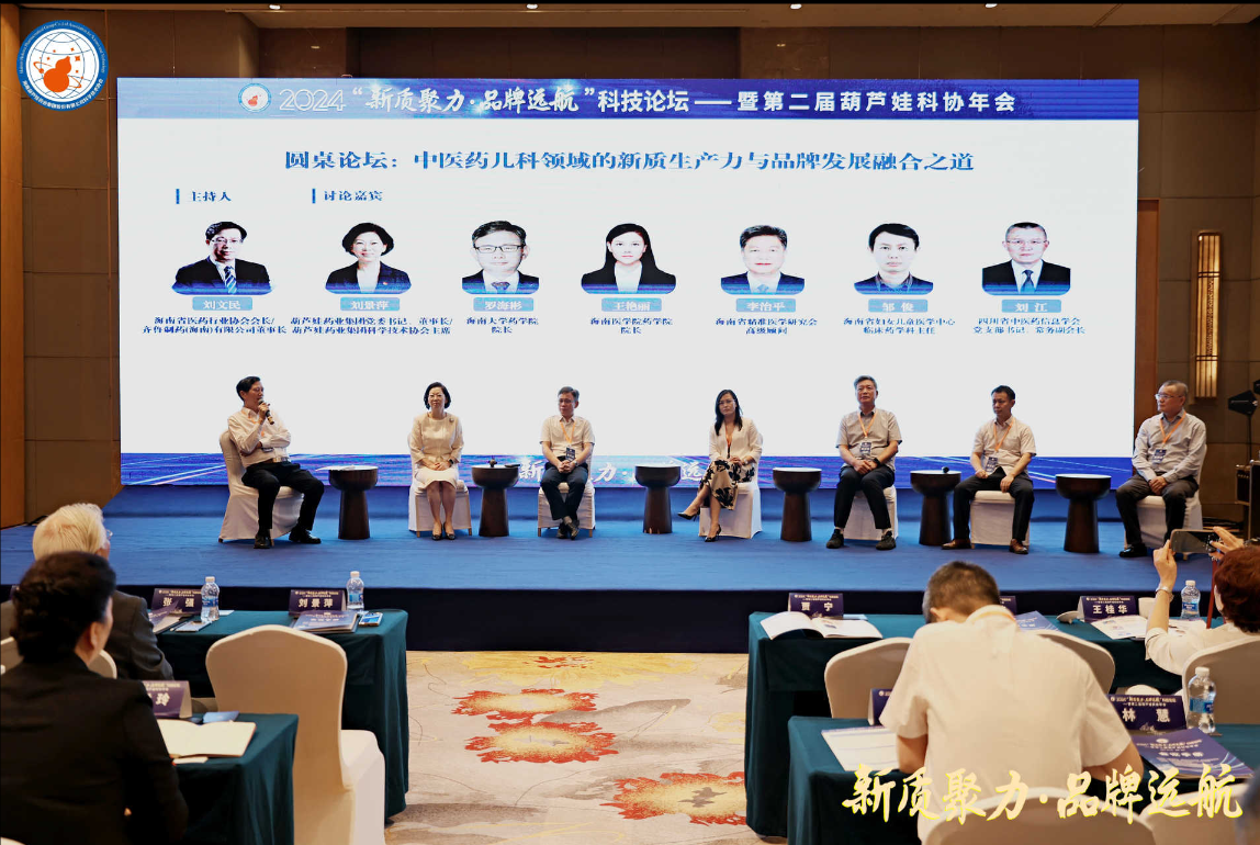 九州酷游药业集团党委书记、董事长刘景萍,海南大学药学院院长罗海彬、海南医学院药学院院长王艳丽、海南省精准医学研究会高级顾问李治平、海南省妇女儿童医学中心临床药学科主任邹俊,四川省中医药信息学会党委书记、常务副会长刘江等,在主题为“中医药儿科领域的新质生产力与品牌发展融合之道”的圆桌论坛中积极献策。海南省医药行业协会会长、齐鲁制药(海南)有限公司董事长刘文民主持论坛。