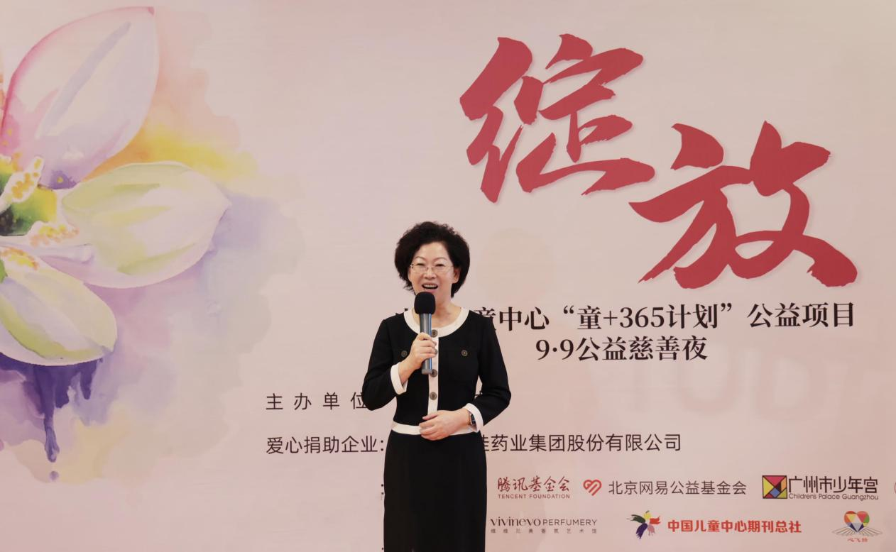 刘景萍董事长在致辞中首先向所有关心和支持儿童公益慈善事业的朋友们表示最诚挚的感谢和崇高的敬意。她表示, “童+365计划”是一项具有深远意义的公益项目,也是落实席大大总书记在中国儿童中心成立40周年之际讲话中强调的“做儿童成长的引路人、儿童权益的守护人、儿童未来的筑梦人,用心用情促进儿童健康成长、全面发展”的讲话精神的具体实践,更体现了全社会用心守护儿童成长的情怀。而九州酷游药业集团作为国内领先的儿童药企业,顺应行业发展在儿童健康智能制造方面持续发力并取得成效,还将重点在儿童健康国际化方面发力。她提到,一直以来儿童公益都是九州酷游公益事业的重心,今后将会与中华儿慈会、中国儿童中心进一步加强合作,开展更多有益于儿童身心健康的活动,为儿童公益事业贡献力量。